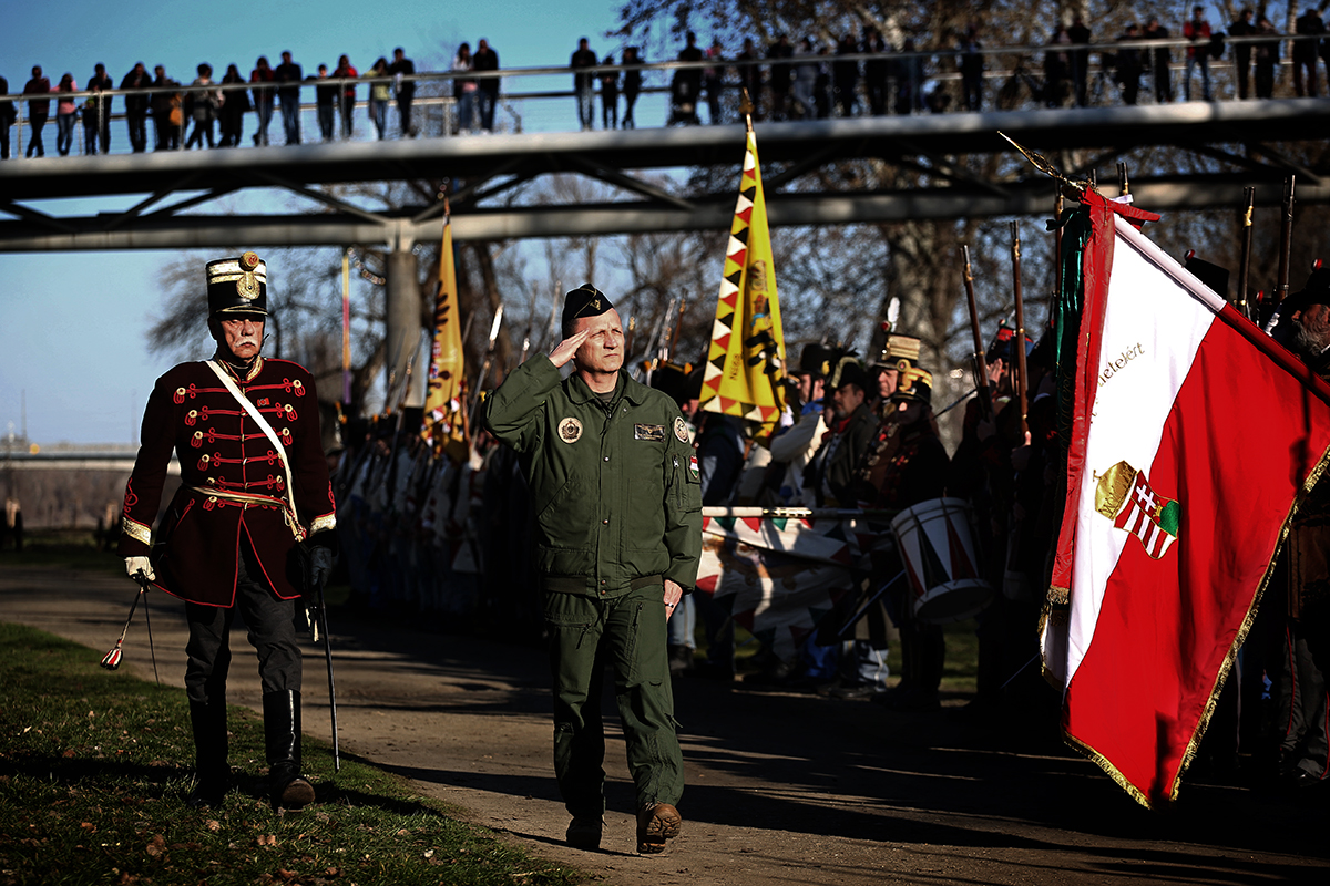2026. március 7-én immár 30. alkalommal tisztelegtünk az 1849. március 5-i szolnoki ütközet hősei előtt. Alapítványunk hívására 220 katonai hagyományőrző vonult fel, hogy megelevenítsék a szabadságharc korabeli hadművészetét. Mind a honvéd, mind a császári alakulatok képviselői kitettek magukért: a közel négyezer fős nézősereg előtt professzionális módon mutatták be a 19. századi hadviselés sajátosságait. A látványos bemutatón mindhárom fegyvernem bizonyította rátermettségét. A honvéd oldalt gyalogsági zászlóaljak, nemzetőrök, a lengyel légió tagjai, valamint huszárok és tüzérség három fontos (kb. 1,7 kg-os golyót lövő) ágyúkkal képviselték. A császári haderő soraiban sorgyalogságot, határőröket, vértes lovasságot és tüzérséget láthatott a közönség.